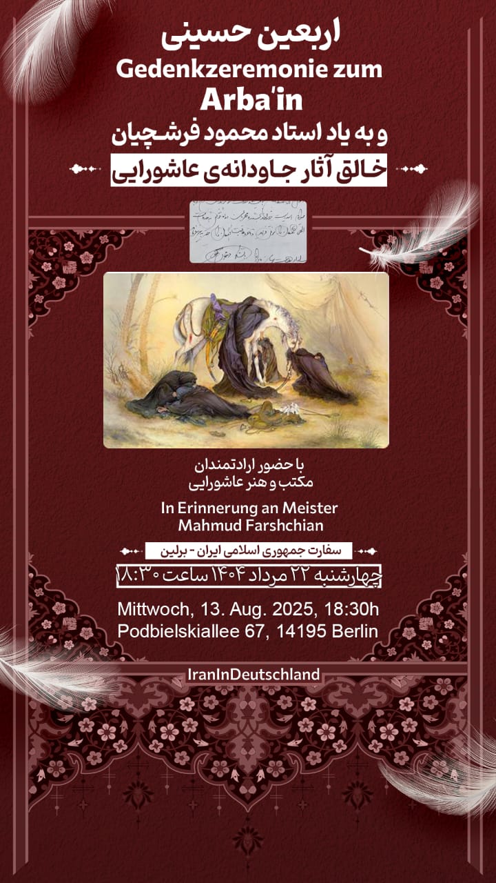 مراسم اربعین حسینی در سفارت جمهوری اسلامی ایران و بزرگداشت یاد و خاطره مرحوم استاد محمود فرشچیان